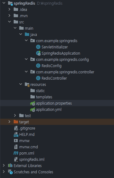 서버를 구동후 예제처럼 했으면 localhost:8080/redisTest 로 접속하게되면