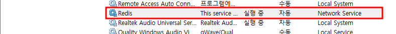 - 설치 완료 후 윈도우 서비스에서 Redis 서비스 확인