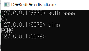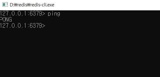 - redis-cli.exe 실행 및 ping 확인