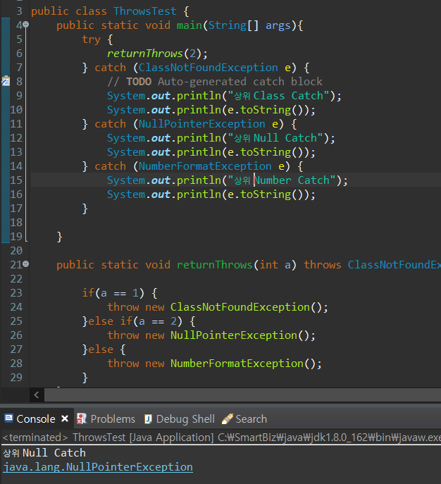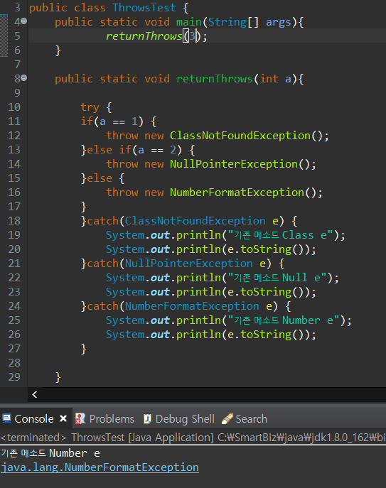 Java 상위로 예외 넘기기 throws