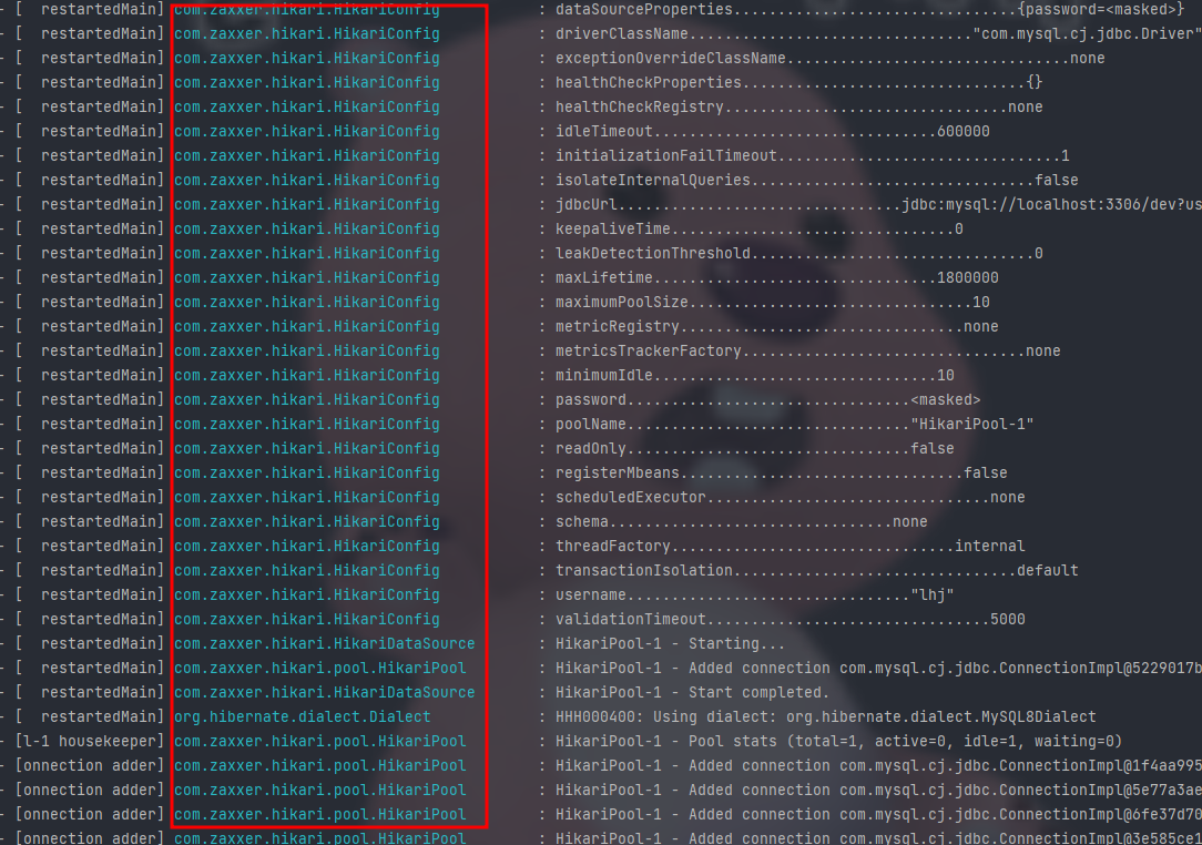 실행시 로그레벨을 dubug로하여 확인해보면 default 인 hakiraCP로 연결이 된다.