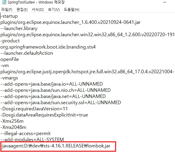 - 설치가 완료 후 eclipse, sts ini 파일 확인