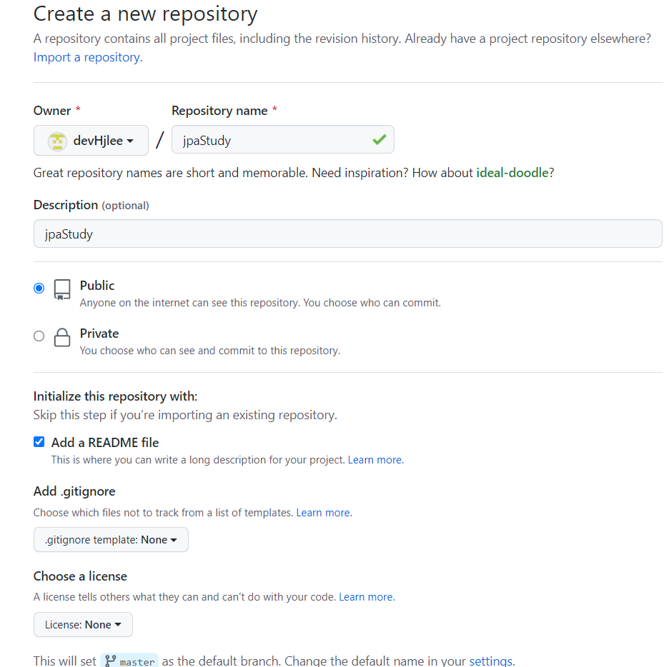 1) 위에 명시했던 jpaStudy 명으로 프로젝트 생성