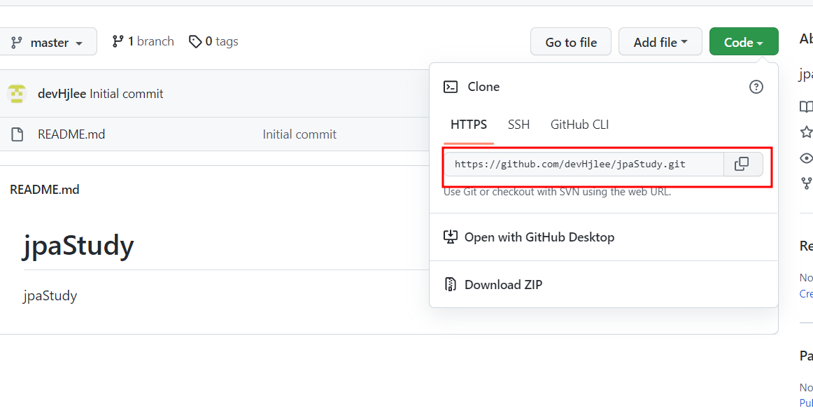 위에서 복사했던 GitHub Repository 주소 붙여넣기