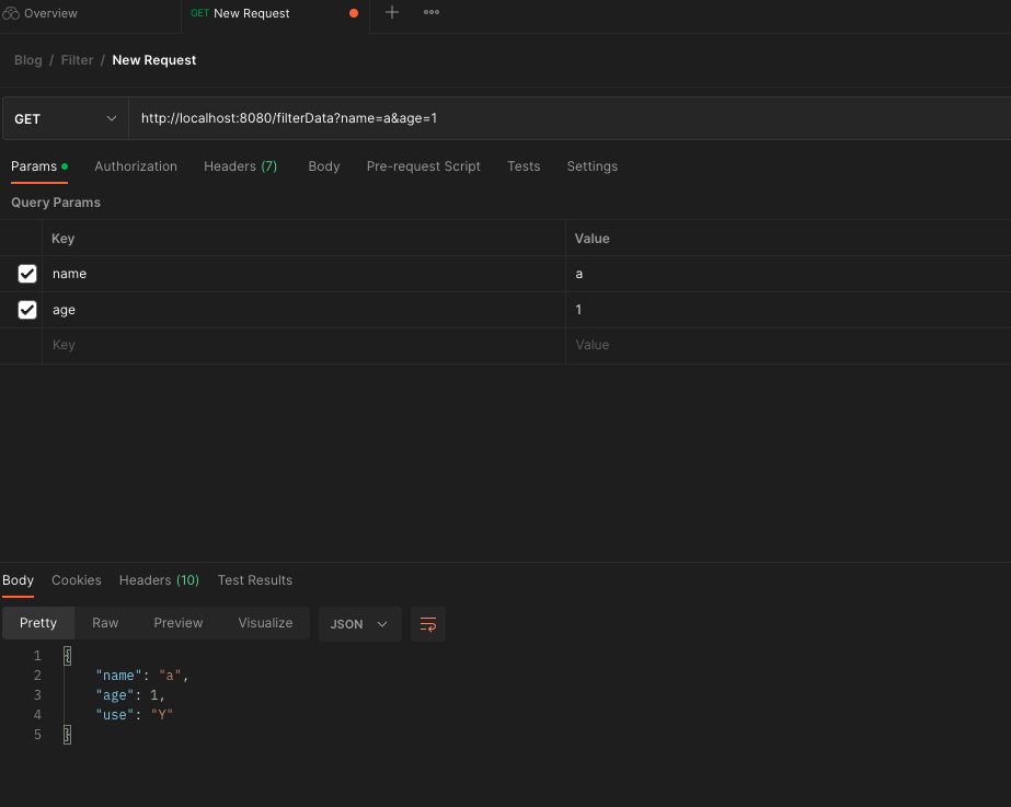 - http://localhost:8080/filterData?name=a&age=1 호출