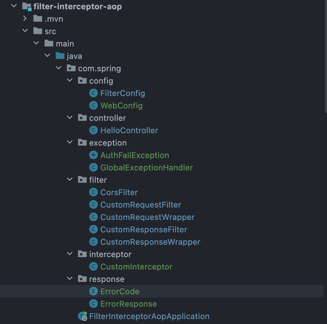 - 프로젝트 구조 (초록색이 Interceptor 에 관련된 소스)