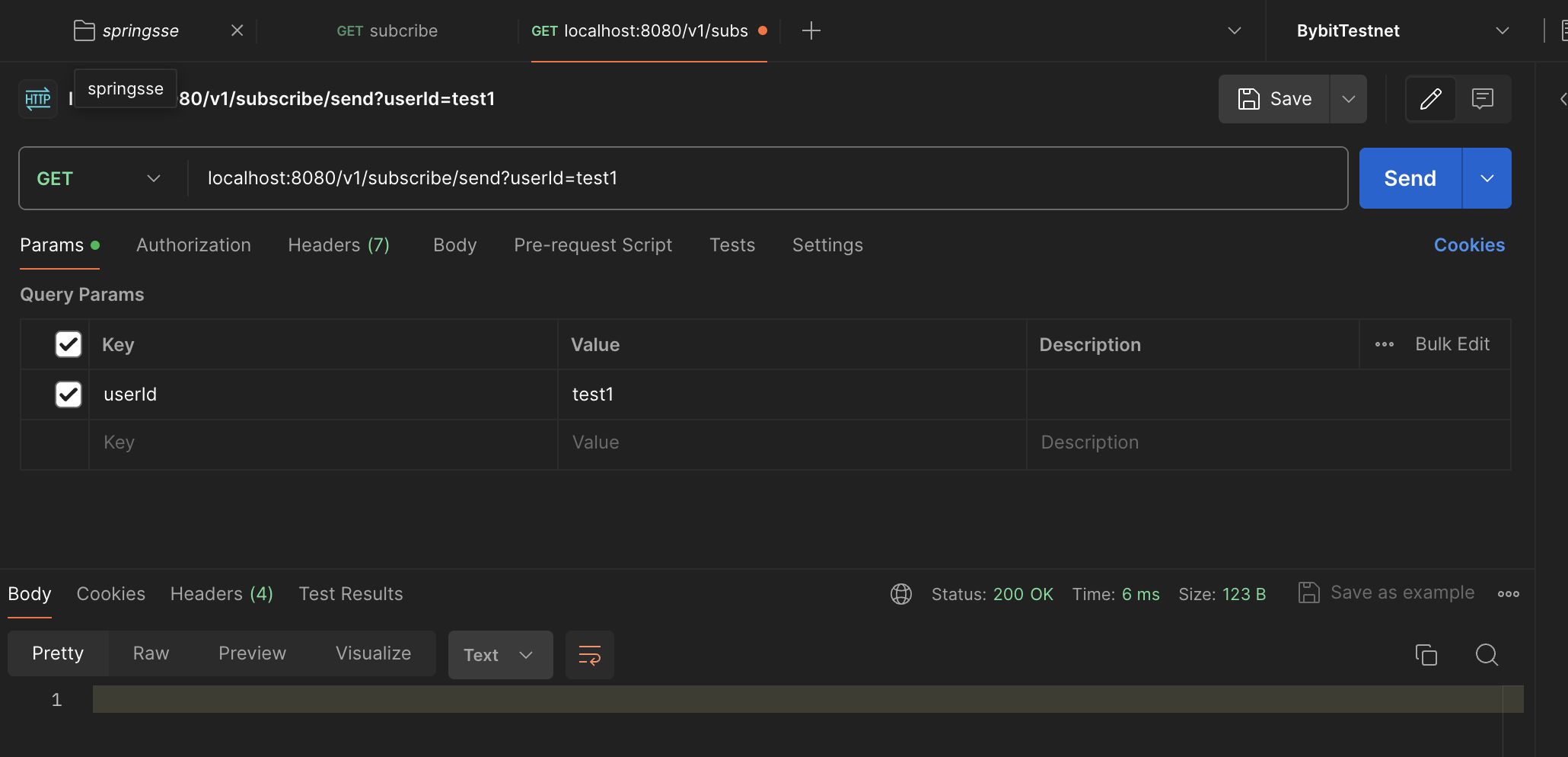 public ResponseEntity<SseEmitter> test(@RequestParam String userId) {