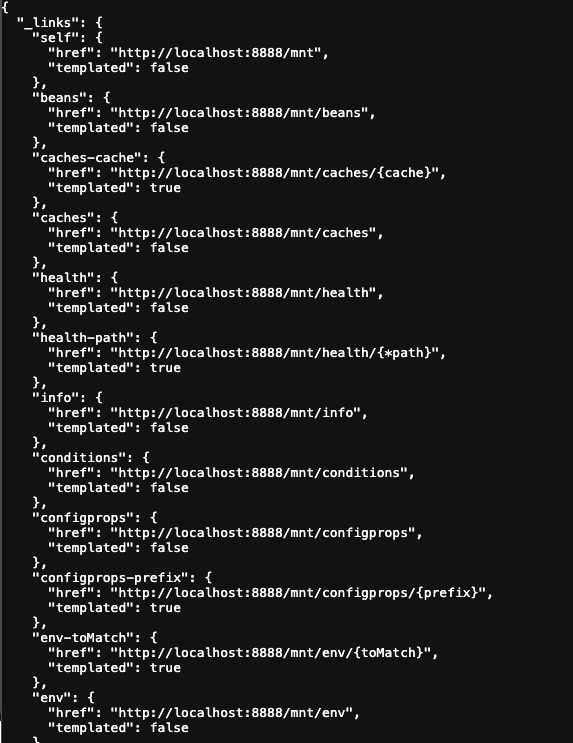 - /mnt 로 접근시 acuator 설정에 맞춰 접근 가능한 URL을 보여줍니다. 현재는 예시를 위해 전부 노출해놨으나 각자 보안을 위해 설정을 변경해야 합니다.