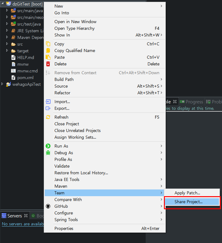 - Commit and Push... : Remote Repository (dzGitTest) 로 바로 소스가 올라감